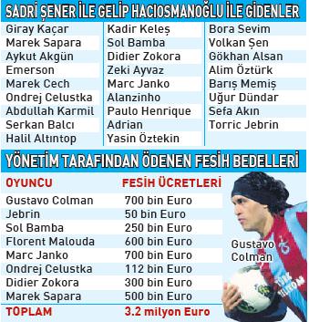 Transfer haberleriyle taraftar ve medyanın başını döndüren Trabzonspor'da başkan İbrahim Hacıosmanoğlu dönemi ilginç gelişmelerle yaşanıyor. 21 yeni futbolcuyla tarihinin en fazla transfer yaptığı sezonunu yaşayan Karadeniz ekibinde, eski başkan Sadri Şener döneminde transfer edilen eski futbolculardan sadece iki isim kaldı. Şener başkan iken yapılan transferlerden sadece Soner Aydoğdu ve Mustafa Yumlu kadroda kalırken, verimsiz 26 ismi Hacıosmanoğlu yönetimi gönderdi. Bazı oyuncuları kiralayan yönetim bazılarını ise bonservisi ile veya fesihle kadrodan uzaklaştırdı.